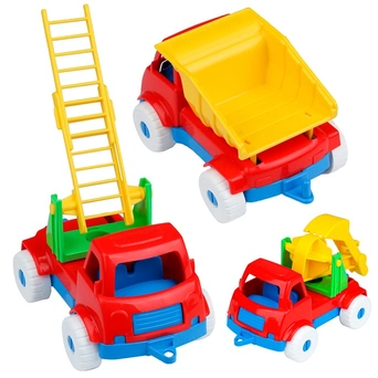 - Состав набора: самосвал, автоэвакуатор, пожарная машина
