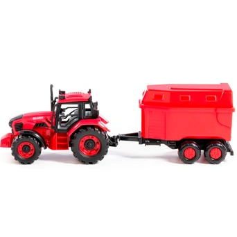 Реалистичная конструкция трактора максимально детализирована, капот открывается. Игрушка оснащена инерционным механизмом. Наличие прицепа для животных разнообразит игру.