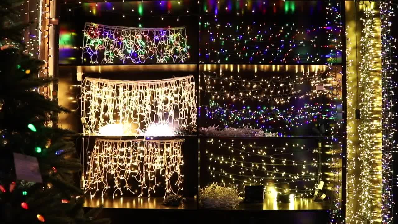 - Гирлянда-сетка: Идеальна для украшения больших поверхностей, таких как стены, заборы, витрины. Представляет собой сетку из проводов с расположенными на них лампочками.